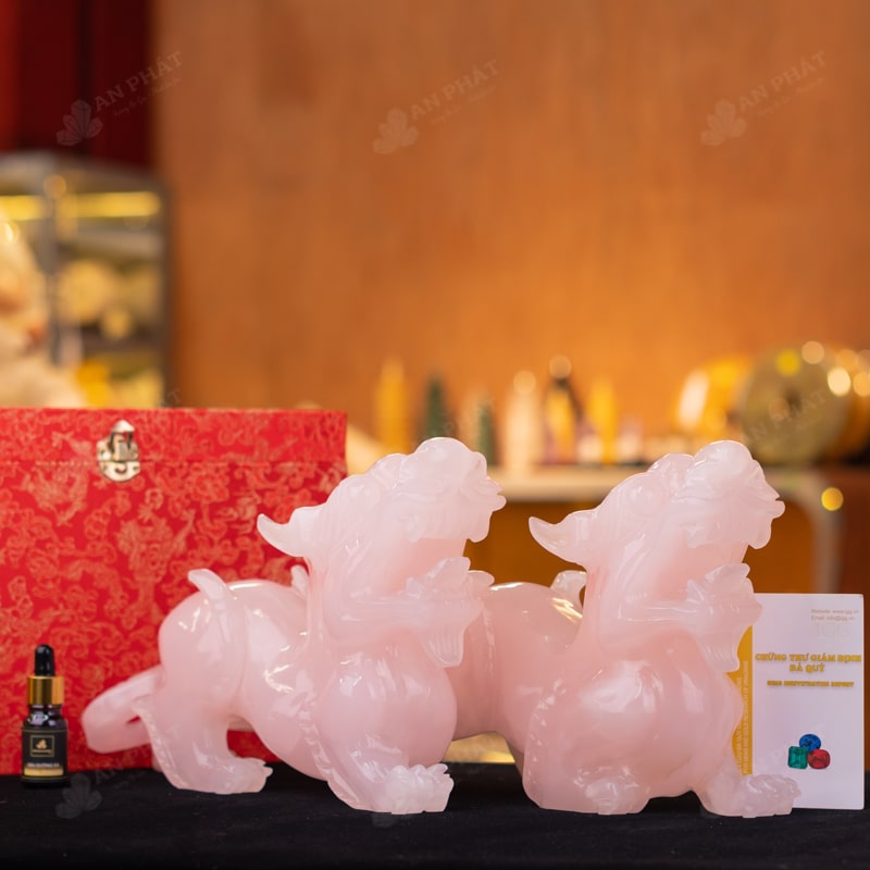 - Trọn bộ sản phẩm bao gồm: tỳ hưu + dầu dưỡng đá + thiệp + giấy kiểm định chất lượng đá + khăn thơm bao sái + giấy hướng dẫn trực tiếp an vị + khai quang tại chùa