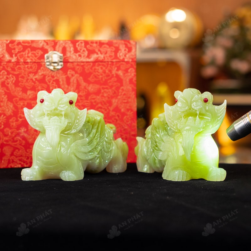 Ảnh cận cảnh cặp Tỳ hưu Onyx xanh