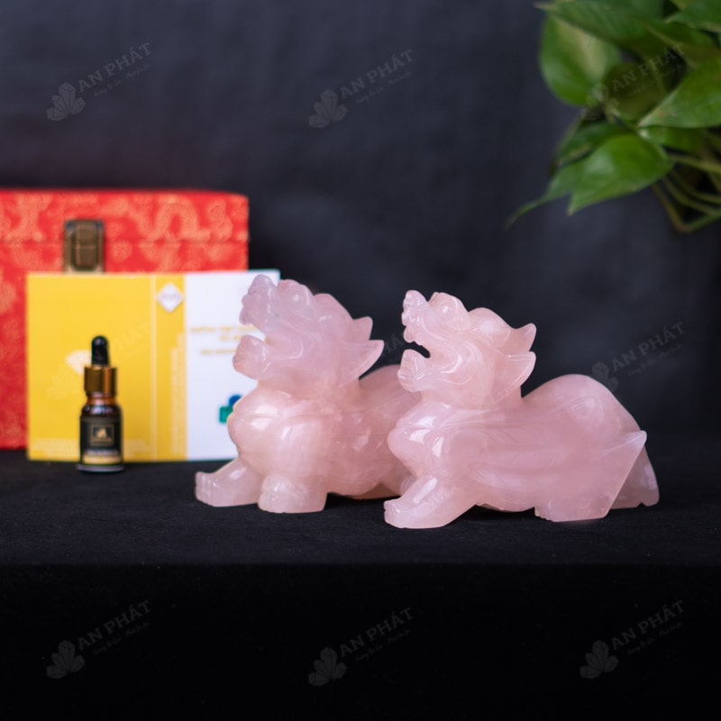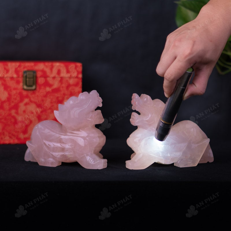 - Chất liệu: Đá Thạch Anh Hồng tự nhiên, nguyên khối