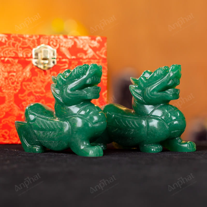 Ảnh cận cảnh Cặp Tỳ Hưu Thạch Anh Xanh