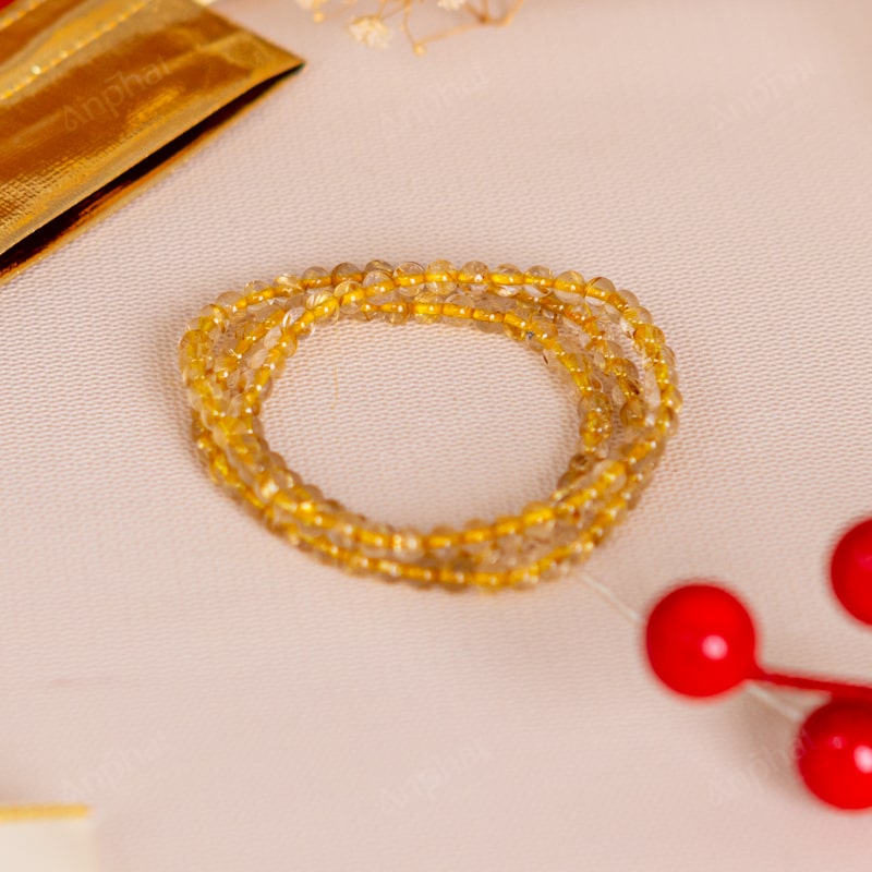 Vòng Tay Thạch Anh Tóc Vàng 1A Loại Cuốn 3 Vòng 5 Ly 080-0861A-5