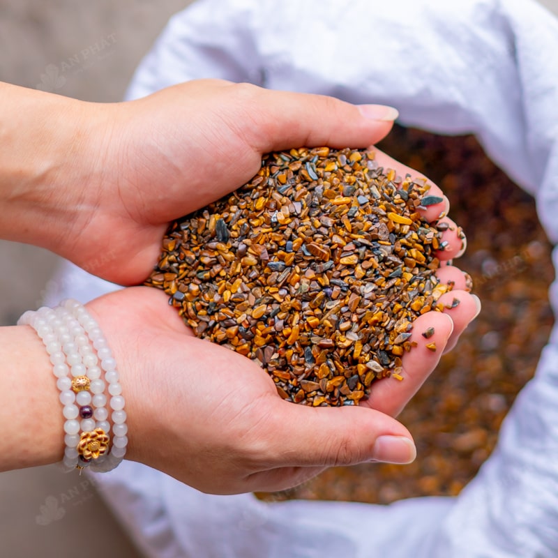 Vụn đá thạch anh mắt hổ mini được dùng vào trong các công việc như dải: bể cá, cây cảnh, lọc nước,lót nền nhà, nền mộ phần.v.v. Vì chúng có dải năng lượng từ trường rất cao lên vận dụng vào trong phong thủy tâm linh rất nhiều.